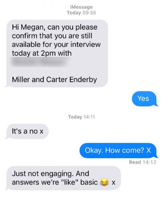 Asistentul manager i-a spus că va primi un e-mail în câteva zile cu decizia lor. Dar, la doar câteva minute după ce a părăsit restaurantul, Megan a primit un mesaj.
