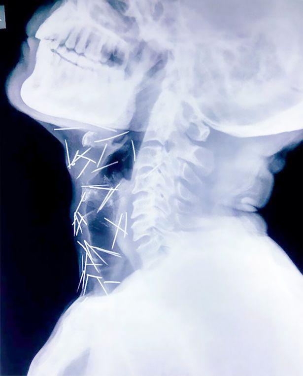Asta nu a fost tot. Noi radiografii au arătat că bărbatul avea ace și în gât. 40 la număr, așa că a fost din nou suspus unei intervenții chirurgicale, scrie Mirror.