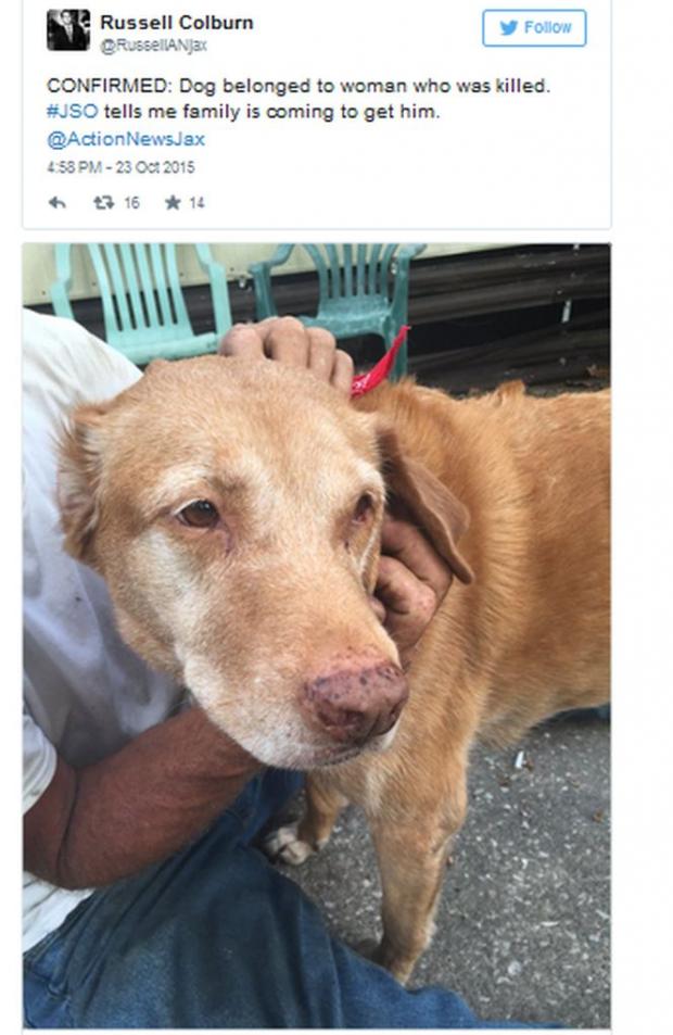 O femeie din Florida a fost accidentată mortal de o mașină în timp ce își plimba câinele. După accident, cățelul victimei a fost fotografiat stând în locul în care stăpâna sa fusese lovită. Animalul nu a plecat de la locul accidentului, până nu a venit familia victimei și l-a luat de acolo.