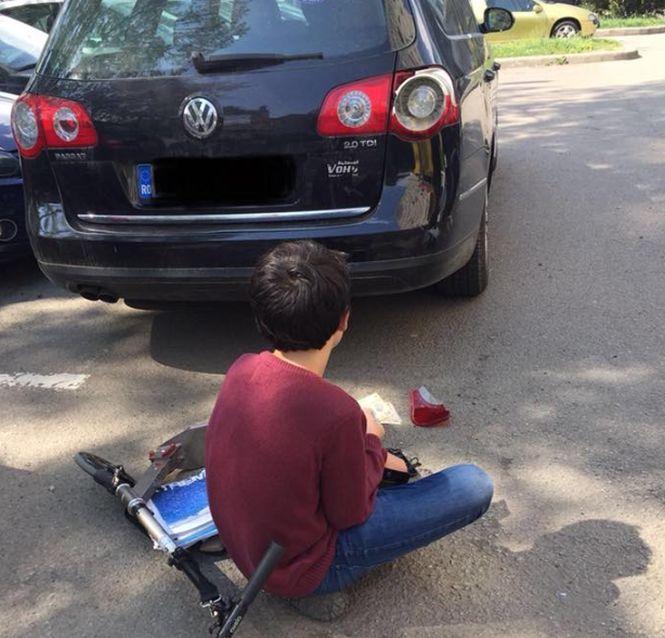 Vasile povesteşte că verişorul său l-a găsit lângă maşina sa pe un băiat care stătea jos, părând că a căzut cu trotineta.