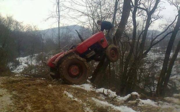 Un şofer din Alba a realizat performanţa de a urca cu tractorul în copac. Parcarea de care ar fi invidios orice conducător auto a avut loc într-o pădure din satul Tăuţi.