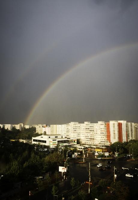 Duminică seara locuitorii Sectorului 3 s-au putut bucura de o privelişte inedită, un curcubeu dublu, fenomen întâlnit destul de rar, scrie b365.ro.