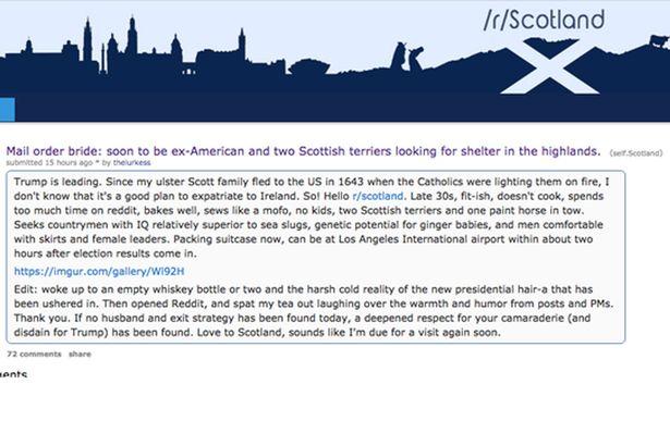 O tânără din SUA este atât de disperată să scape de președinția lui Donald Trump încât s-a oferit scoțienilor pe post de ”mireasă comandată prin poștă".