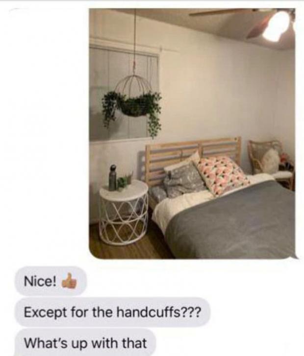 Problema: de pat erau erau legate niște cătușe folosite pentru momente intime, scrie The Sun.