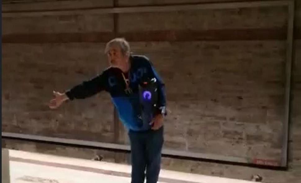 Un bărbat îmbrăcat în trening a început să danseze chiar pe peron. Și asta nu e nimic! Bărbatul avea o boxă imensă în brațe, care lumina în toate culorile.