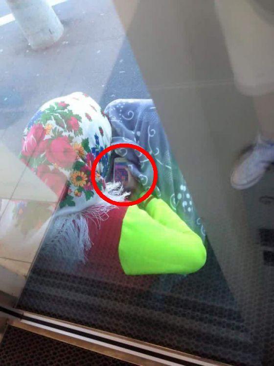 Astfel, persoana surprinsă în fotografie stă pe trotuar și cere pomană trecatorilor, probabil având și o povestioară buna de stors lacrimi, însă pe sub haine își ocupă timpul jucând jocuri pe iPhone.