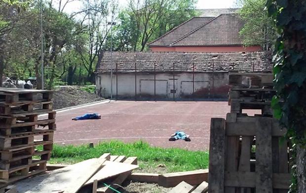 O zi de miercuri, ora prânzului, în plin șantier! Doi muncitori au fost surprinși de un timișorean pe când își făceau siesta pe terenul de sport din curtea Liceului Calderon, aflat în plin proces de reabilitare, scriu jurnaliștii tion.ro.