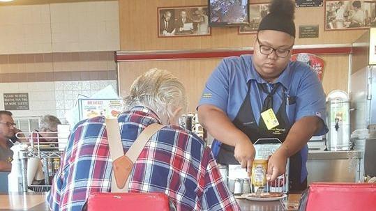 Evoni Williams lucra cu normă întreagă într-un restaurant din La Marque, Texas, pentru a strânge bani ca să-şi continue studiile. Săptămâna trecută, un bărbat în vârstă pe nume Adrian Charpentier a rugat-o să îi taie şunca deoarece nu avea destulă forţă în mâini din cauza unei afecţiuni. În ciuda faptului că era o dimineaţă aglomerată, iar ea avea mult de muncă, Williams nu a ezitat şi l-a ajutat pe bărbat.