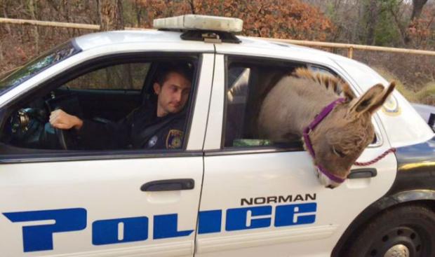 Singura problemă a fost că măgărușul a confundat locurile din spate ale mașinii de poliție cu… toaleta. Dar ofițerul Canaan nu s-a supărat.