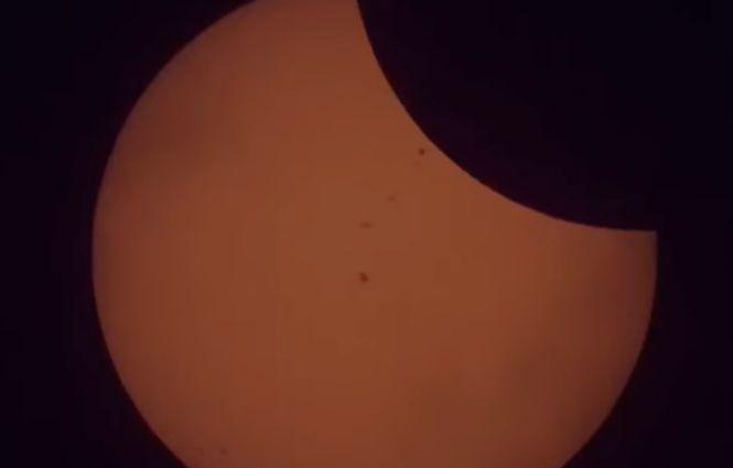 ECLIPSĂ DE SOARE. Când eclipsa era în faza parțială, el a fotografiat Soarele și a surprins, alături de umbra Lunii, Stația Spațială Internațională, care trecea prin dreptul Soarelui.