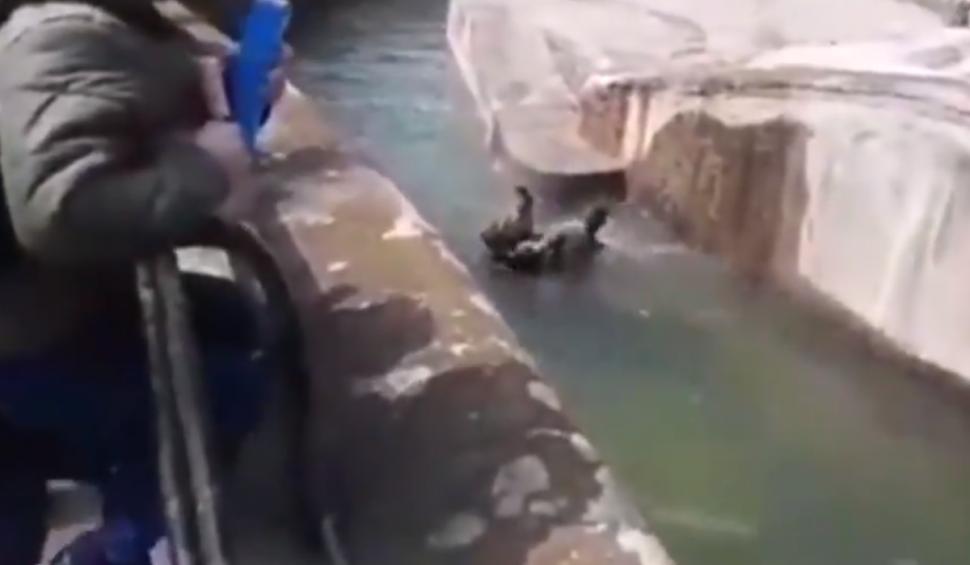 Bărbatul a fost surprins de ceilalți vizitatori, în timp ce intră în țarcul ursoaicei Sabina. La un moment dat, surprins de mamifer, se aruncă în râul ce desparte țarcul de zona publică. Nu durează mult și începe lupta cu ursoaica, pe care încearcă să o scufunde, fortându-i capul sub apă.