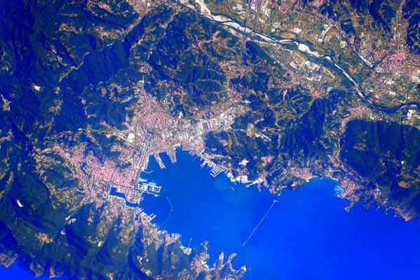 Aşa se vede din spaţiu La Spezia, oraşul din regiunea Liguria, Italia. Imaginea este făcută de la o înălţime de 400 de kilometri.