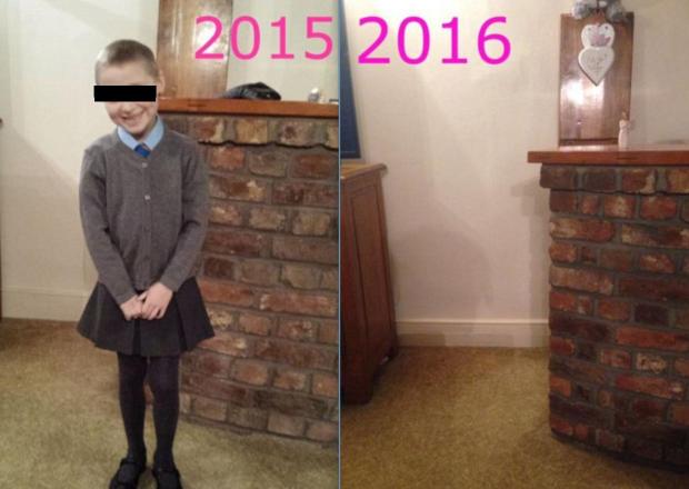 Julie Apicella a postat pe Facebook o fotografie cu fiica ei în prima zi de școală, făcută în 2015, și o alta făcută în 2016, însă din care fiica ei lipsește.