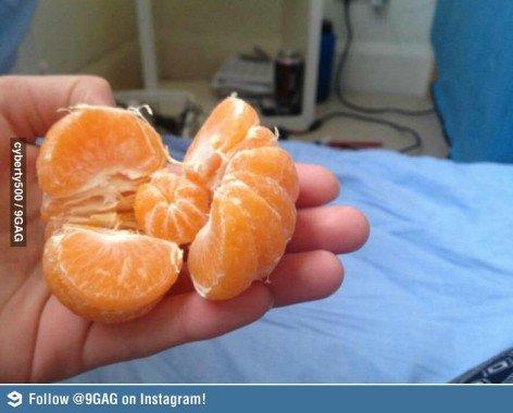 Într-o fotografie postată pe site-ul 9gag cu titlul "Cineva a fost gravida", un utilizator din Turcia prezinta ce a descoperit intr-o portocala si anume... o alta portocala, mai mica.