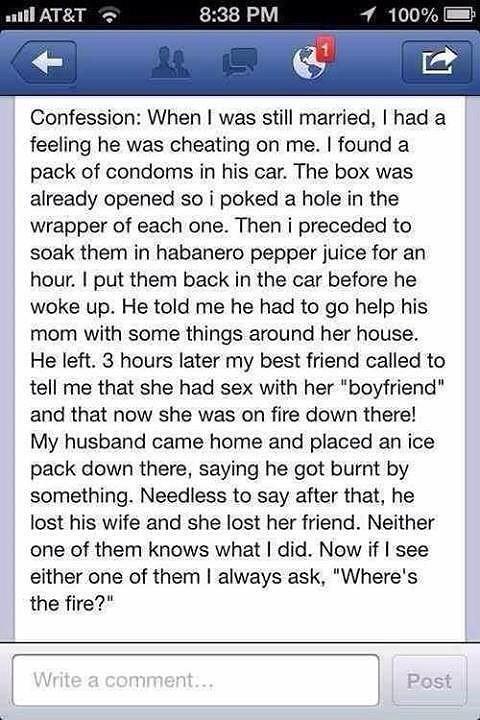 „Trei ore mai târziu, cea mai bună prietenă a mea m-a sunat să îmi spună că a făcut sex cu prietenul ei şi că simte o usturime îngrozitoare. Soţul meu a ajuns şi el ceva mai târziu acasă şi şi-a pus imediat o pungă de gheaţă acolo jos, spunând că s-a ars făcând ceva”, a mai povestit femeia.