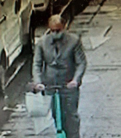 La scurt timp bărbatul iese cu bijuteriile și pietrele prețioase ascunse într-o pungă albă, se suie pe o trotinetă electrică verde pe care o lăsase afară și dispare la orizont.