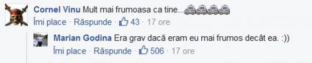„Era grav dacă eram eu mai frumos decât ea. :))”, a scris Marian Godină. Comentariul său a adunat deja peste 500 de like-uri.