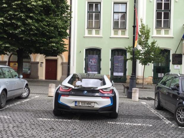Proprietarul unui bolid de lux de ultim generaţie s-a gândit că poate parca liniştit pe două locuri, în Piaţa Mică din Sibiu.