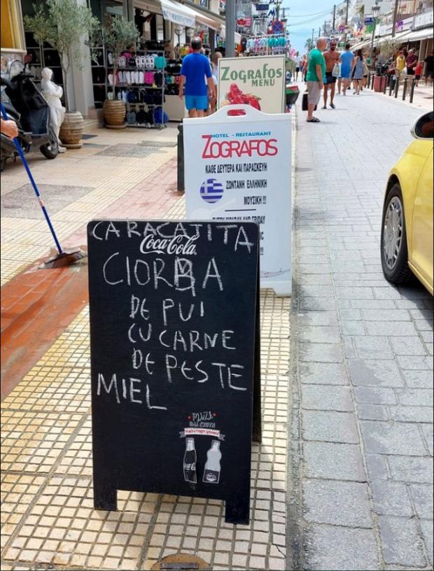 Este şi cazul de faţă. Totul s-a întâmplat la un restaurant din Grecia care avea afişat chiar la intrare o parte din meniu.