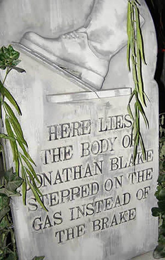"Aici zace trupul lui Conathan Blake, care a călcat acceleraţia în locul frânei".