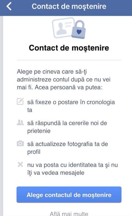 Facebook se gândește la viața de apoi și le cere utilizatorilor săi să-și actualizeze datele personale. Mai exact, un utilizator al rețelei de socializare a primit o notificare prin care este rugat să desemneze o persoană de contact care să-i gestioneze contul după ce va muri.