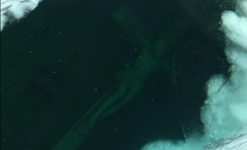 Această cruce uriașă are o poveste impresionantă. A fost aruncată în lac în anul 1956, în memoria unui scufundător care își pierduse viața.