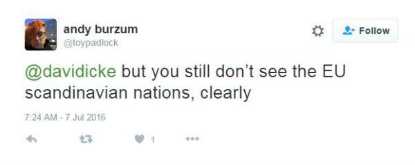 Drept răspuns, David Icke a fost imediat catalogat drept islamofob, mai ales având în vedere că a ignorat total țările scandinave în harta sa și...pentru a da bine, a inclus Turcia, care nici măcar nu face parte din Uniunea Eurpeană.