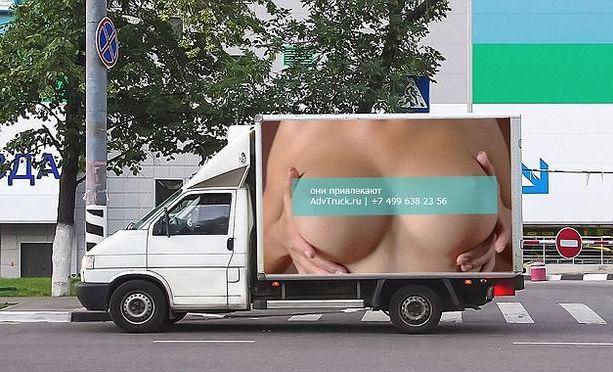 Pe 30 de camioane au fost lipite poze cu sânii unei femei, iar camioanele au fost trimise pe străzi. În ziua respectivă, 517 accidente ar fi fost provocate din cauza faptului că reclama i-a distras pe șoferi.