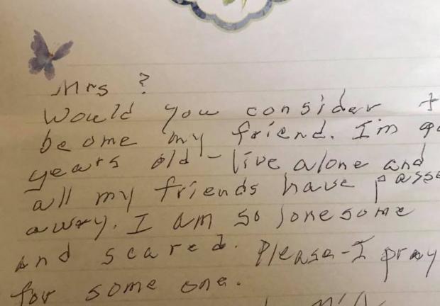 „M-am întors acasă și am descoperit un bilet în ușă. Era de la o vecină care locuiește vizavi de mine. Scria: „Vrei să fii prietena mea? Am 90 de ani și locuiesc singură. Toți prietenii mei au murit. Sunt singură și speriată. Sunt foarte tristă că trebuie să fac asta, dar cine știe? - poate așa voi câștiga o prietenă”.