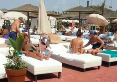 Cele doua femei marocane, dar având naţionalitatea unei ţari europene neprecizate, s-au aşezat la soare cu pieptul dezgolit la piscina din Tahiti Beach Club, unul dintre cele mai exclusiviste din Casablanca.