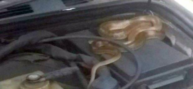 Doar că în câteva minute, cineva l-a chemat să vină de urgență la mașină. Când a deschis capota a avut un șoc. Înăuntrul se afla un șarpe.