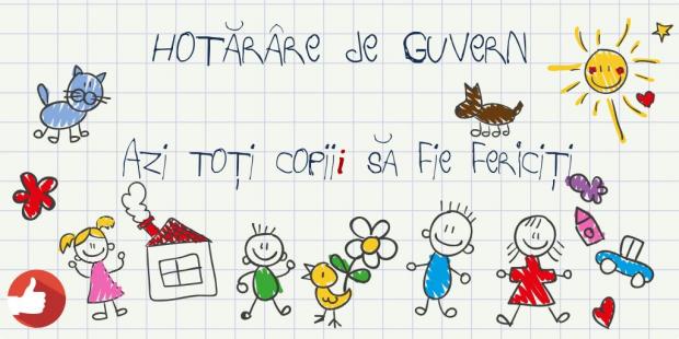 Premierul Sorin Grindeanu a emis o ”Hotărâre de Guvern” specială de 1 Iunie, decretând că astăzi toți copiii trebuie să fie fericiți, ilustrând acest lucru cu un desen postat pe Facebook.