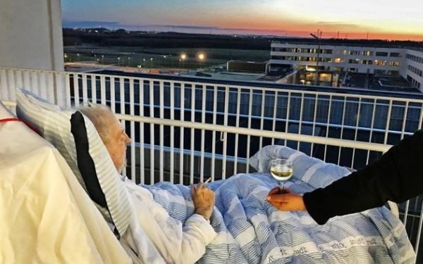 Iar aceștia nu au stat prea mult pe gânduri. Pensionarul, care avea o ruptură de anevrism aortic și nu mai putea fi operat, a cerut o țigară, un pahar de vin și să admire apusul de pe balconul spitalului, scrie Kanal D.