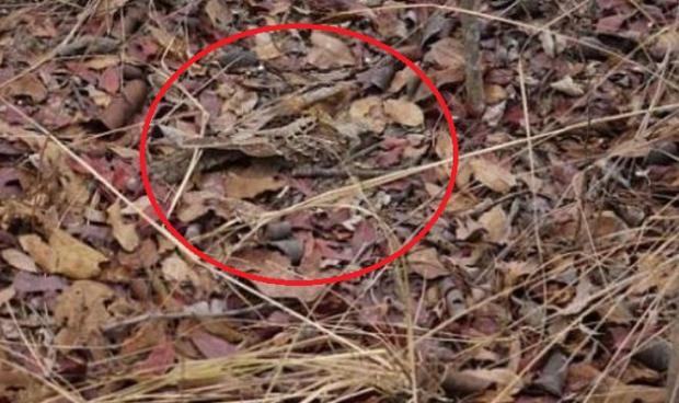 Penajul păsărilor din imagine este aproape identic la culoare cu frunzele căzute pe jos. În fotografie este o femelă de caprimulg, pasăre nocturna insectivoră. Alături de ea este un pui.