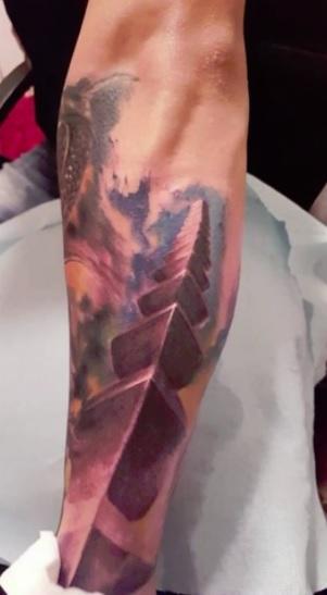 „Am făcut tatuajele în Italia, artistul fiind un român de-al nostru, pasionat şi el de istorie, cu o experienţă de aproape 24 de ani în domeniul tatuajelor şi îmi este prieten drag. Numele lui este Şerban Marius Dorin şi este din Deva. Toată lucrarea a durat 5 ore jumate cu mici pauze deoarece sunt fumător. Am mai văzut lucrări făcute de el cu lupul dacic şi luptători daci, dar se pare ca eu am fost primul care a ales să îşi tatueze Coloana Infinită”, ne spune Ionuţ Andrei Pîrvulescu, scrie impactingorj.ro.