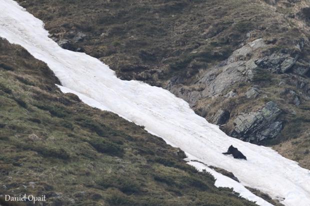 Ei bine, iată ce face un urs atunci când nu este sub ochii ageri ai inchiziției contemporane. Se dă pe burtă, pe zăpadă", este mesajul transmis de Daniel Opait pe pagina sa de Facebook.