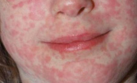 Rubeola se manifestă prin erupţie cutanată pe tot corpul, mărirea ganglionilor la nivelul cefei şi subraţelor, însoţite sau nu de febră moderată.