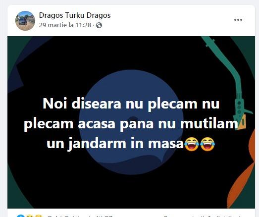Seara trecută, polițiștii Târgovişte l-au reținut pe Dragoș Turcu, după ce aceasta a postat pe rețelele de socializare mesaje de amenințare la adresa organelor legii și a instigat la violențe.