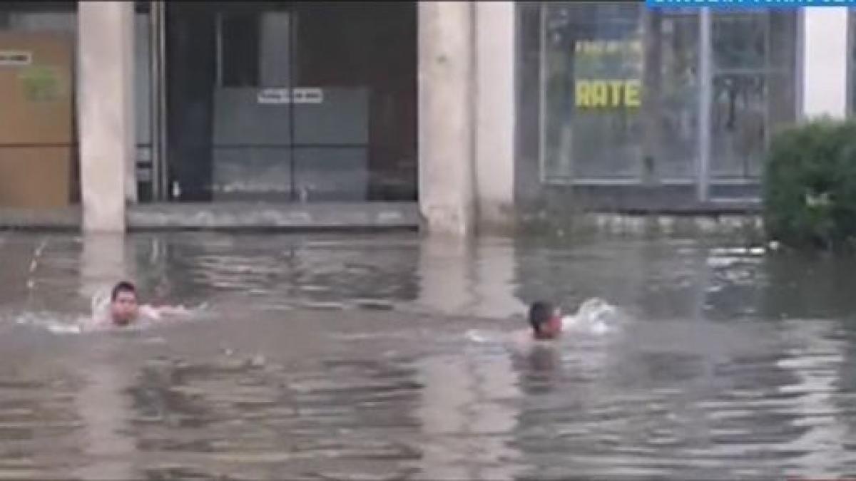 Un cartier întreg din municipiul Drobeta Turnu Severin a fost paralizat de apa care depăşea jumătate de metru. Parcările s-au transformat în piscine, după ploaia care a durat un sfert de oră.