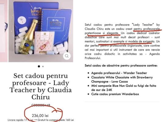"Când credeam că le-am văzut pe toate, aflu că un magazin online vinde linia de lux pentru șpagă către profesoare pe care un cadru didactic din România a ales să-și pună numele.", a scris o femeie pe Facebook.