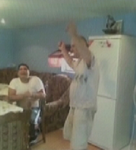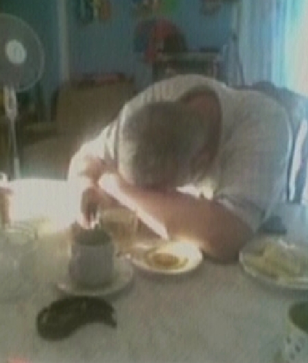 Acesta cade întâi cu capul pe masă. Gazda, amabilă, îi oferă un loc pe canapea, de care Chirică se bucură din plin.