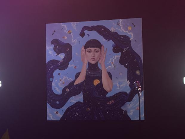 În tablou apar diverse sugestii care sunt inspirate din universul muzical al Irinei. Elemente cum ar fi bandana sau elementul primordial: cosmosul, care e prezent în creaţia ei, în cazul de faţă Irina a constituit şi o sursă de inspirație".