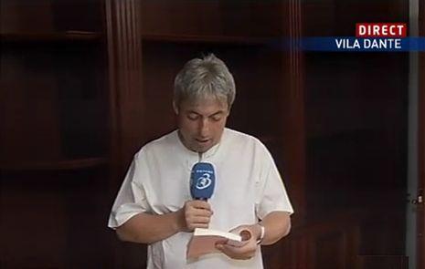 Gestul a fost făcut de Marius Oprea miercuri seara, când istoricul a fost invitatul lui Răzvan Dumitrescu la emisiunea Subiectiv de la Antena 3, "studioul" fiind chiar vila Dante.