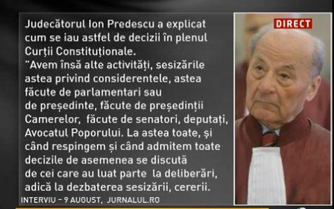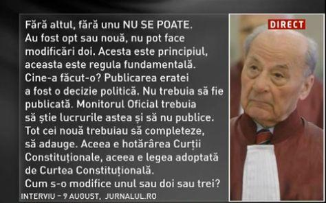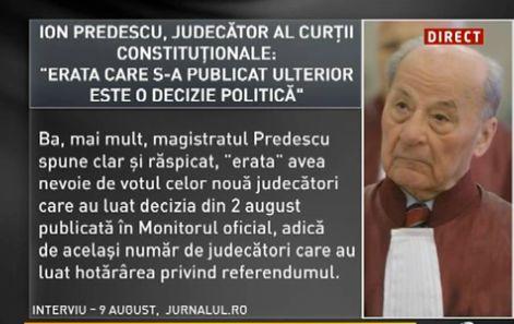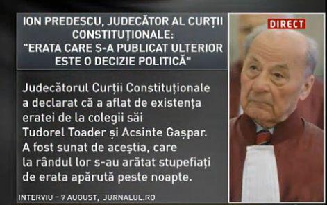 "Publicarea eratei a fost o decizie politică. Nu trebuia să fie publicată. Monitorul Oficial trebuia să ştie lucrurile astea şi să nu publice", a spus judecătorul CCR, Ion Predescu.