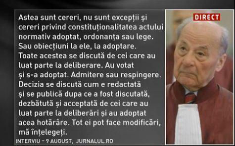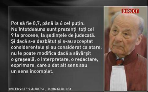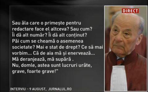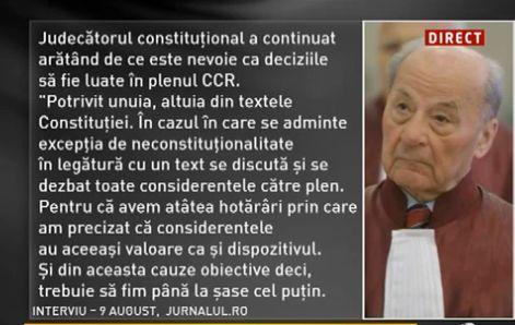 Interviul cu judecătorul CCR a fost prezentat integral, în ediţia de joi seară a emsiunii Sinteza zilei, de la Antena 3.