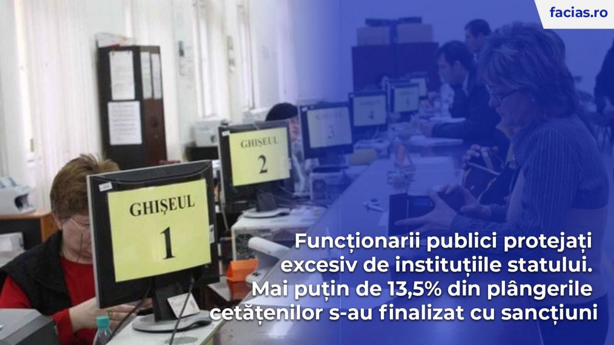 Datele FACIAS, obținute de la 55 de instituții publice centrale și locale, arată că mai puțin de 13,5% din totalul plângerilor cetățenilor s-au soldat cu sancțiuni, majoritatea fiind simple mustrări scrise”, spune FACIAS într-un comunicat de presă.
