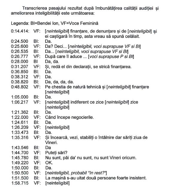Iar expertiza audio realizată de un specialist autorizat redă conversația-plan dintre cei doi.