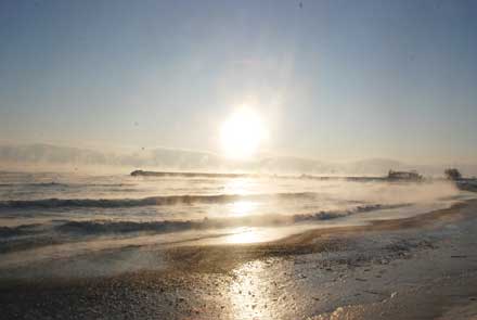 Din cauza temperaturilor foarte scăzute, tărmul mării este deja îngheţat. Dacă va rămâne la fel de rece şi în următoarele zile, este foarte posibil ca marea să îngheţe pe o porţiune mai vastă, cum s-a întâmplat în urmă cu patru ani, când se putea merge pe o porţiune de câţiva metri de la mal.