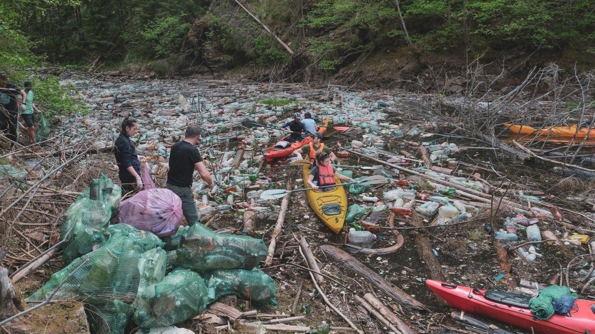 "După ziua intensă de sâmbătă, cu muncă epuizantă pentru voluntari, în condiții dificile în teren accidentat și printre bușteni uriași plutitori, ne-am încheiat ziua cu bine igienizând toată aria propusă mai puțin fundătura din golful problemă unde era o aglomerare infernală de deșeuri.