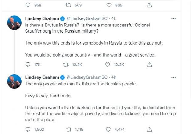 Nexta_tv notează că ambasada Rusiei în SUA a reacționat la postările lui Graham spunând că îndemnul la asasinarea președintelui rus este o infracțiune și solicitând explicații autorităților americane.